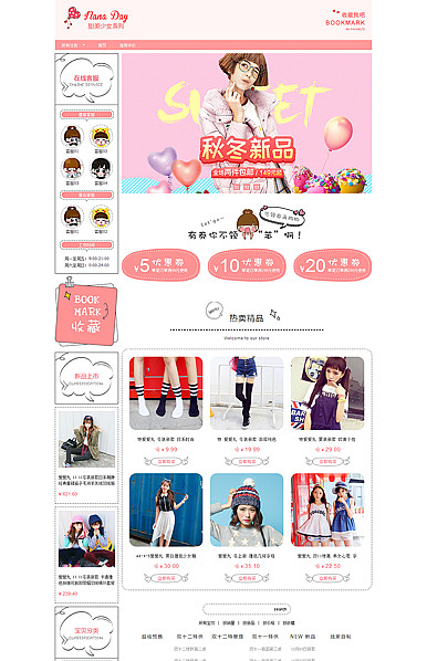 基础版:甜美少女-女装、女鞋、女包、化妆美容类等女装行业专用旺铺专业版模板