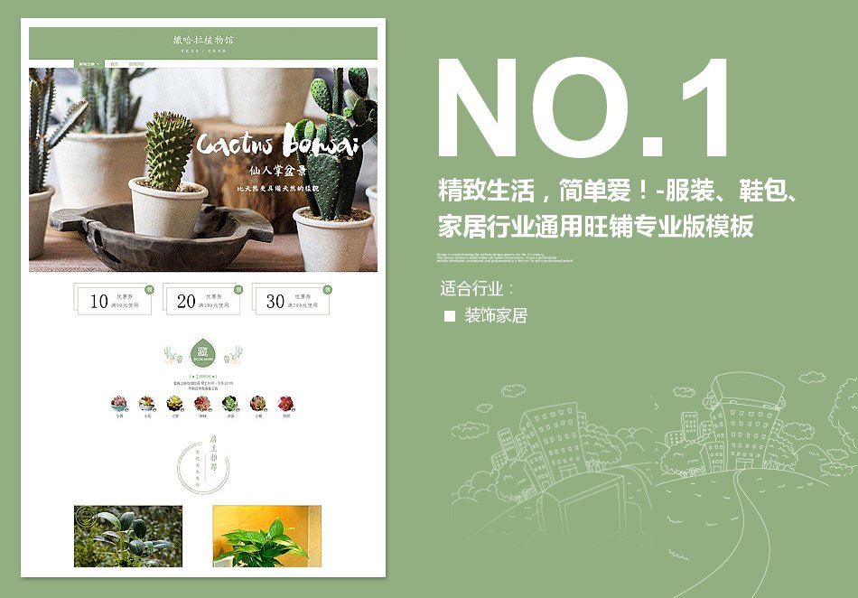 [B1191-1] 精致生活,简单爱!-服装、鞋包、家居行业通用旺铺专业版模板