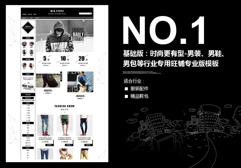 基础版:时尚更有型-男装、男鞋、男包等行业专用旺铺专业版模板