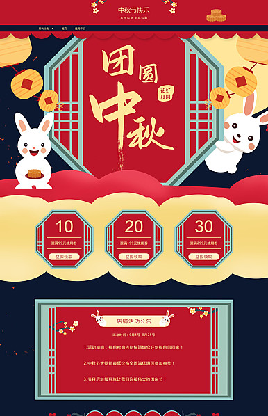 [B1324-1] 基础版:月圆中秋-中秋节日类全行业通用旺铺专业版专题模板