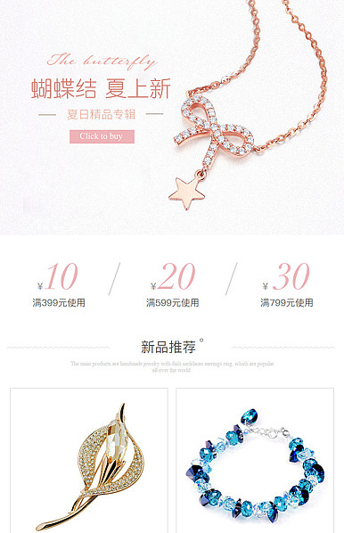 粉色简约风格-珠宝饰品、项链、戒指等-手机模板