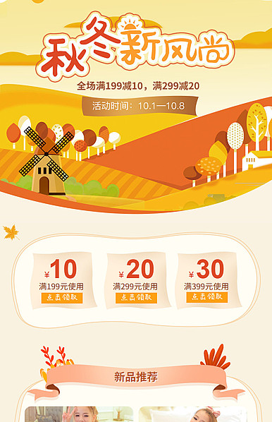 [B2058] 橙黄色简约可爱风格-童装行业手淘首页模板