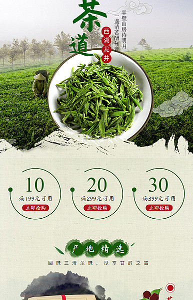 红绿色系古典风格-茶叶、特产、干货等-模板