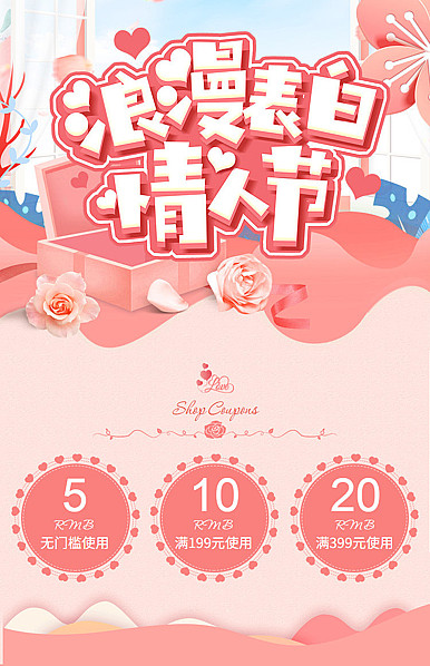 粉色花纹风格-2.14、七夕等情人节-全行业节日专题模板